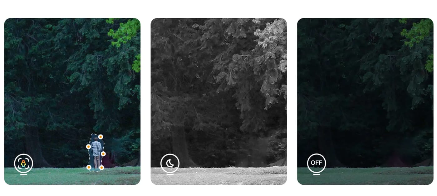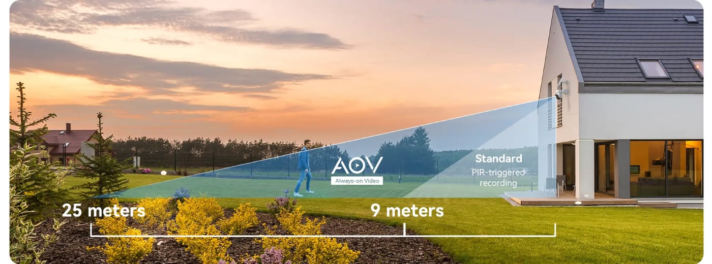 AOV PT can be adjusted to different night vision modes to suit your needs and can automatically switch to full colour mode when a person is detected to ensure a clear and bright picture; you can also turn off the night vision mode or apply only IR mode to reduce power consumption.