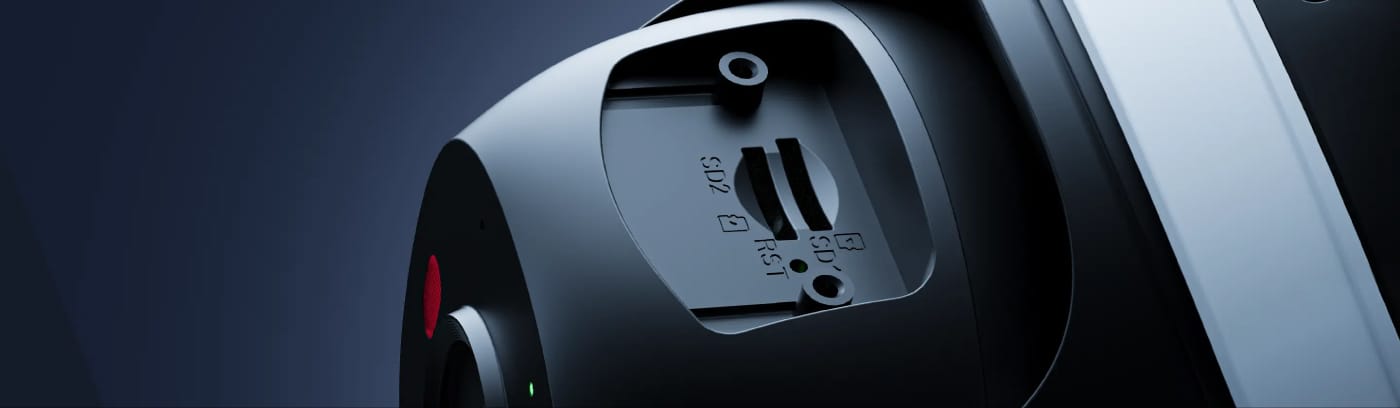 The camera includes two SD card slots, each supporting up to 512 GB, giving you a combined capacity of up to 1 TB. This ensures extended recording time and added data security.