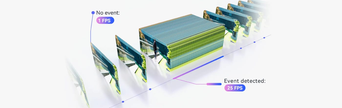 With IMOU’s pioneering All-Day Storage Saving Recording (AOR) mode¹, only 1 frame per second is captured when no event occurs dramatically reducing memory usage while high-frame smooth video recording occurs when an event is detected.