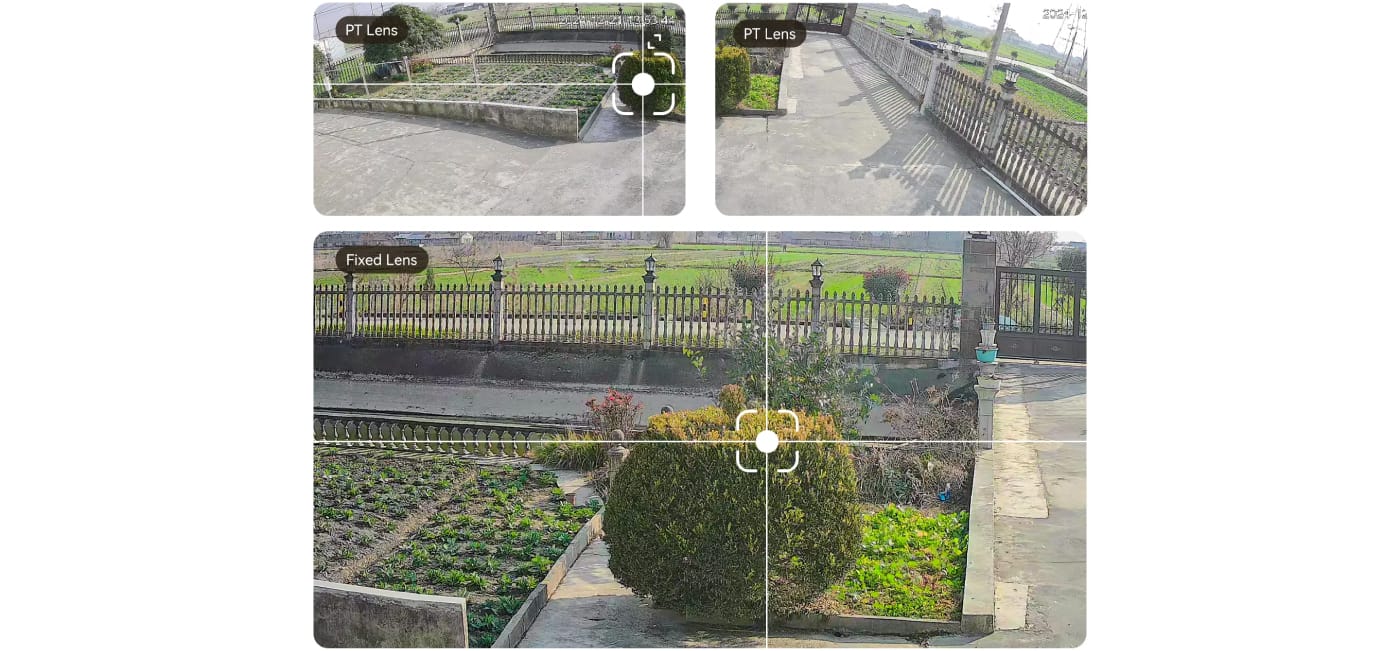 You can click anywhere in the screen of fixed lens in the app, and the PT lens will immediately turn to the position you pressed, quickly focusing on what you want.