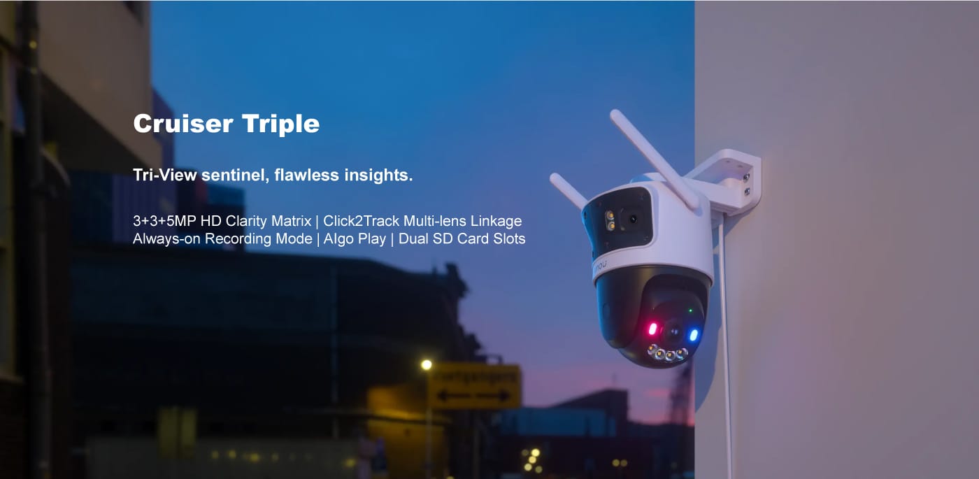 The Cruiser Triple has a fixed lens resolution of 3+3 MP and a PT lens resolution of 5 MP, giving you an experience of unparalleled clarity.